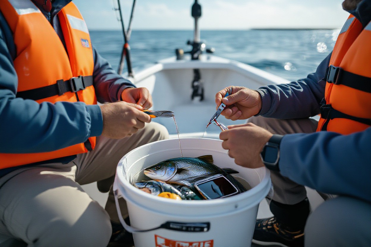 Considering all points, you should always wear your life jacket, check forecasts and water conditions, carry a communication device and first-aid kit, follow local regulations and size/limit rules, use proper hooks and handling to protect yourself and fish, supervise children, avoid alcohol while boating, and practice safe casting and sun protection to keep outings safe.